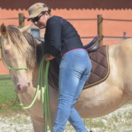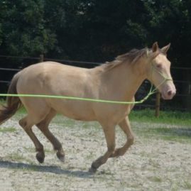 C’est une pouliche hyper attachante, calme, indépendante, douce, très intelligente, très à l’écoute et très respectueuse de l’homme !