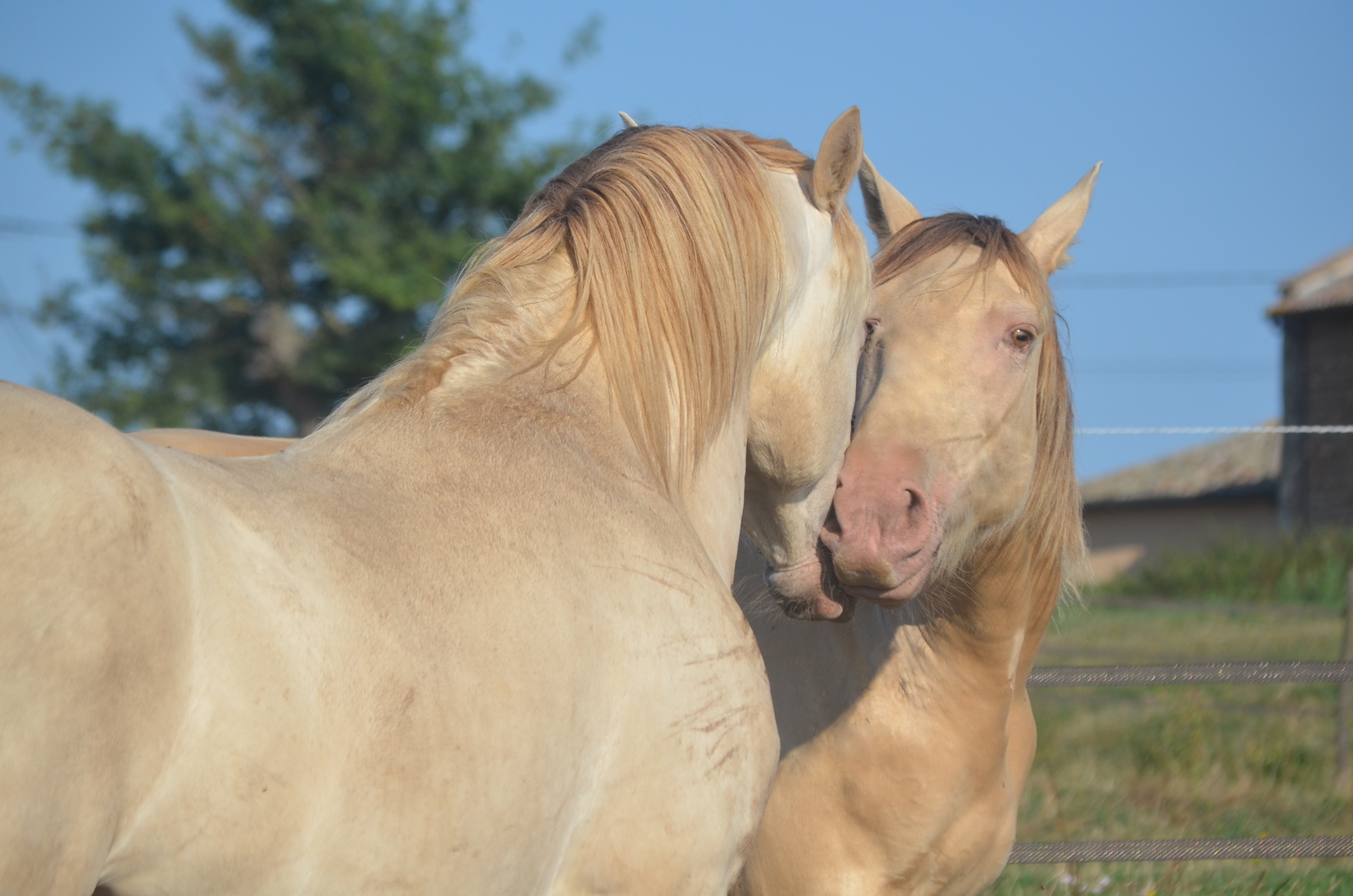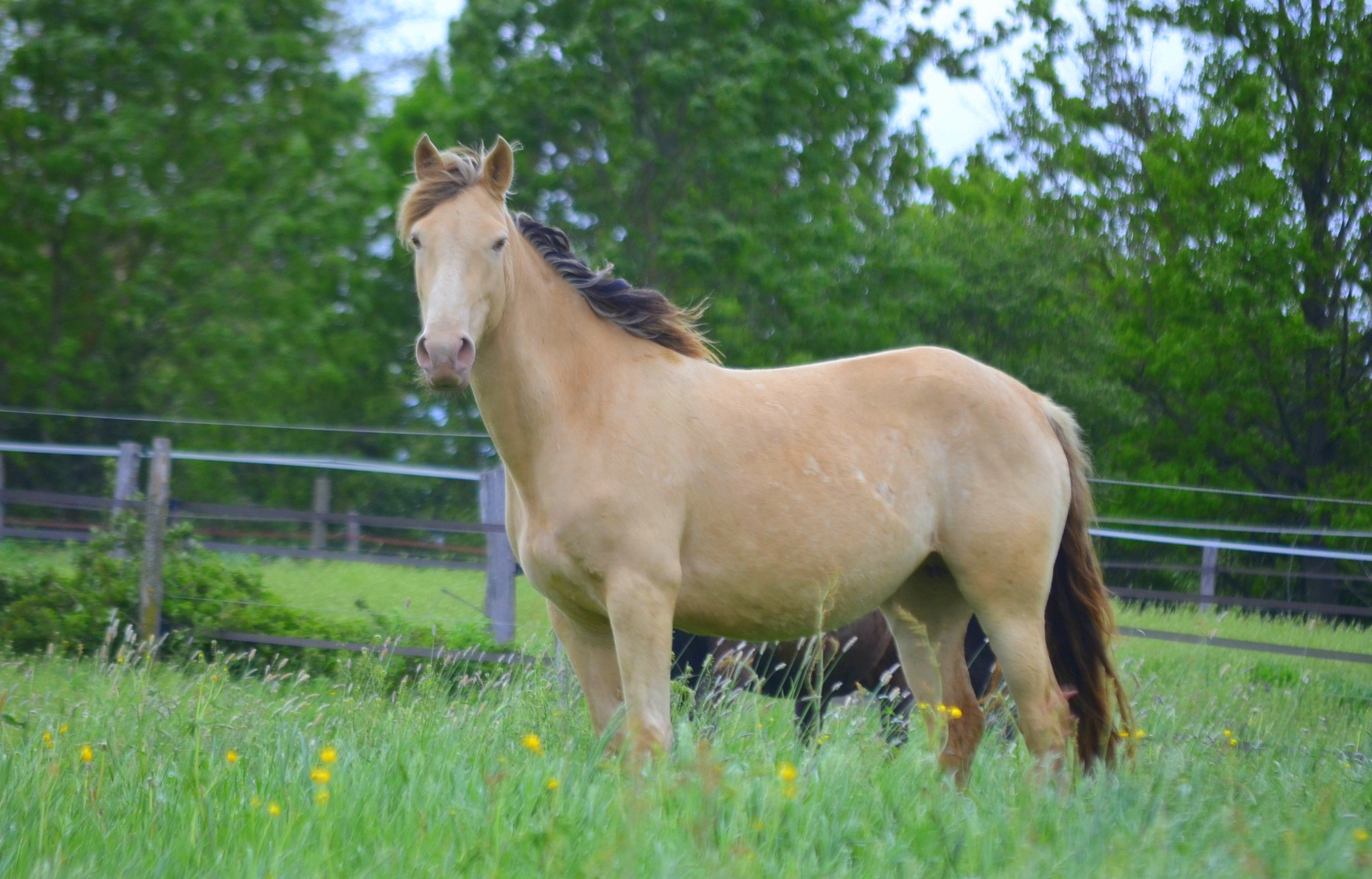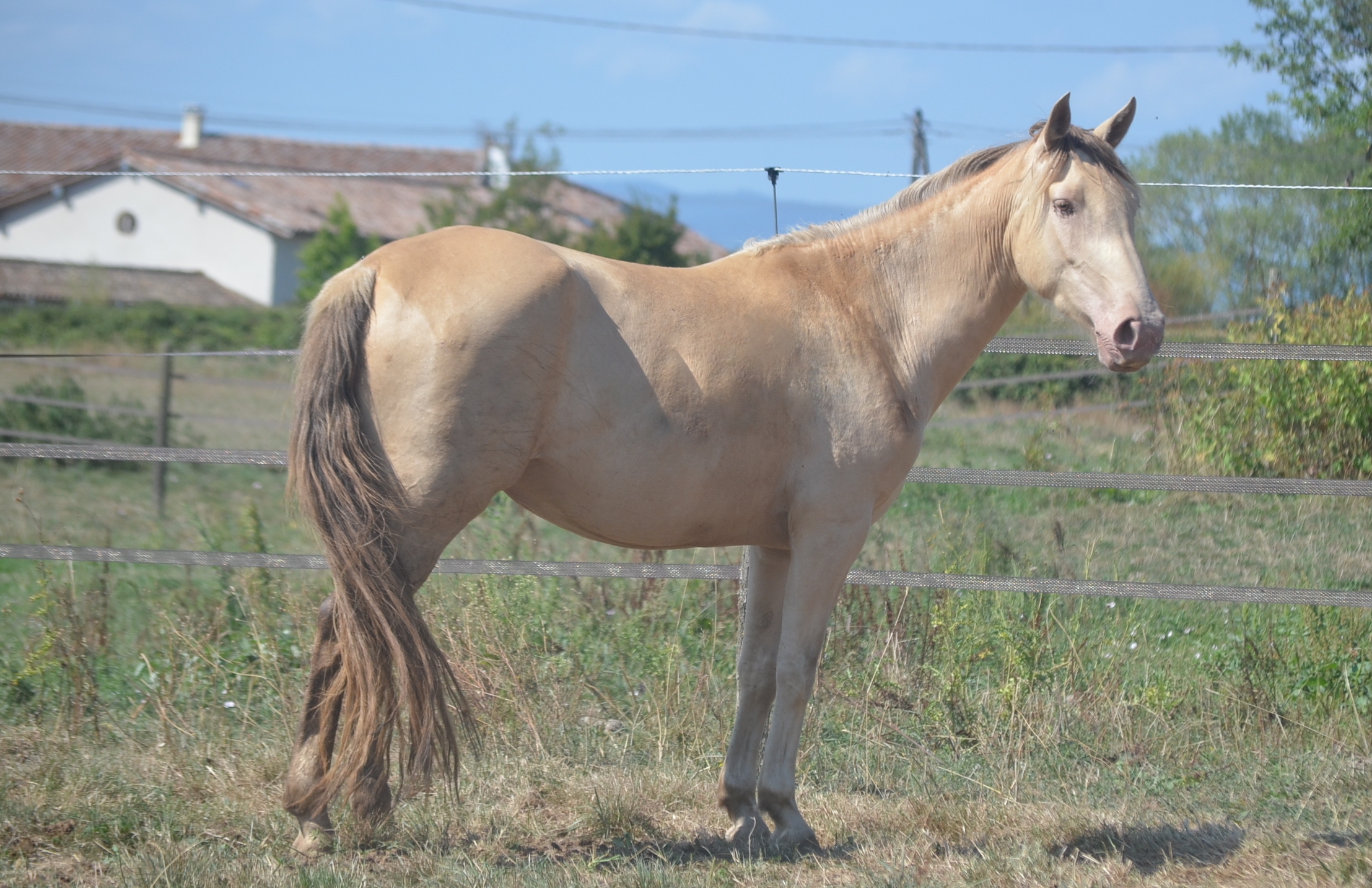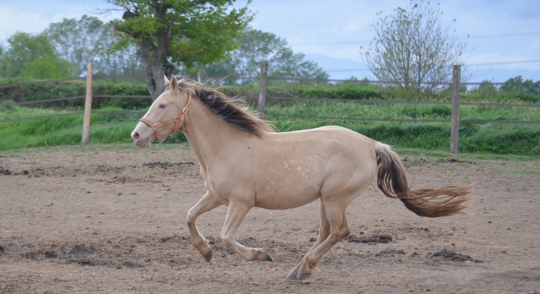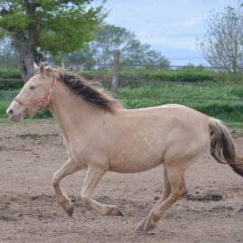Le 14 avril 2024 à 10h du matin, une deuxième pouliche champagne crème ambre mais cette fois beaucoup plus claire que Naherys pointe le bout de son nez Orihime de La Lyre.