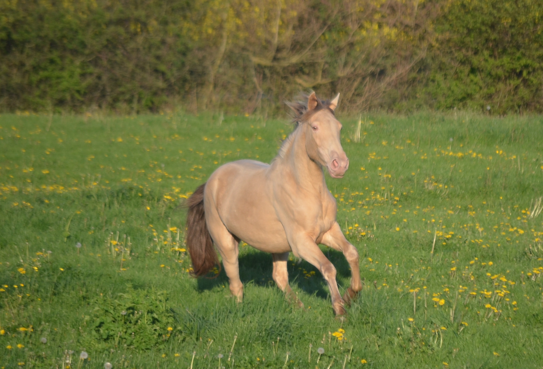 – champagne pearl ambre ou champagne pearl or ce qui signifie que le pearl ne se verra pas mais il pourra se transmettre! Visuellement ce sera un poulain champagne or ou champagne ambre comme Forever