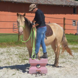 Forever est une pouliche que nous avons très bien manipulée: très confiante en l’homme, elle passe différents types de sols (boue, graviers, gué…)elle accepte également tapis, sacs plastiques, draps… sur son dos ! Elle traverse des rubalises…