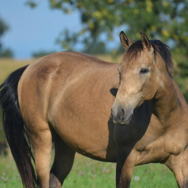 Meia est une jument très agréable, curieuse et tellement facile à vivre. Elles est très douce avec l’homme et adore être à notre contact. C’est une jument hyper sociable. Elle n’a peur de rien et a un mental froid et extraordinaire!