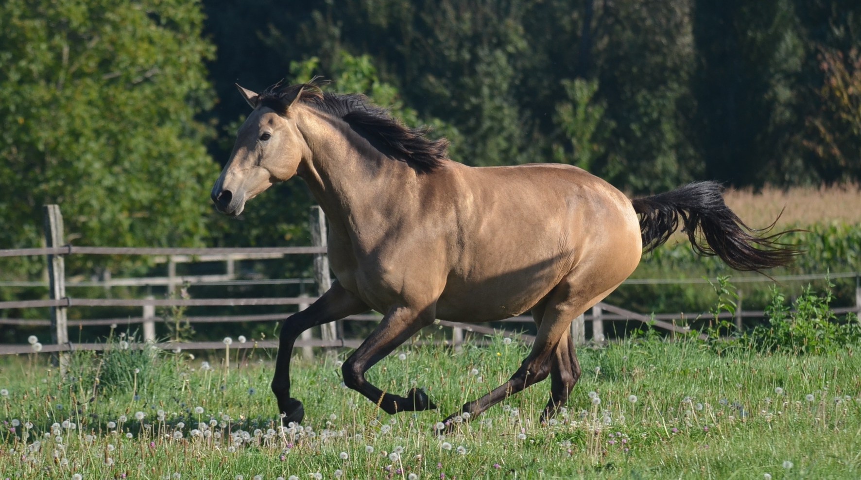 Meia est de robe isabelle. Elle est génotypée EE Aa CRcr.