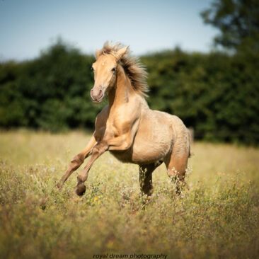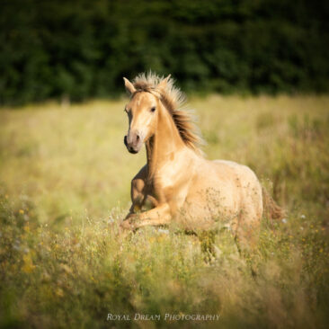 En 2018, Caelia et Divino ont donné naissance à Imerya de La Lyre, première pouliche OC de robe double pearl en France !