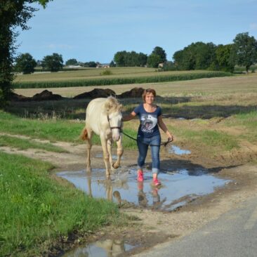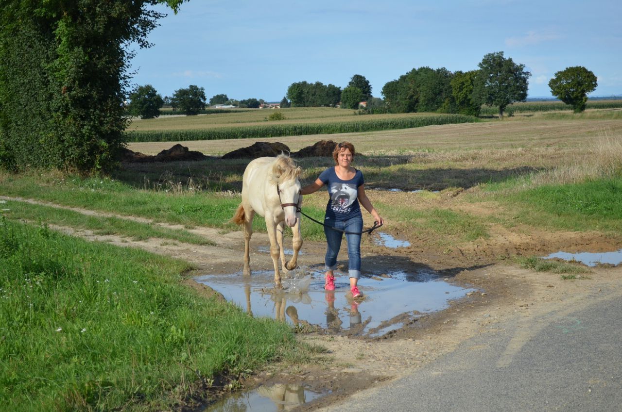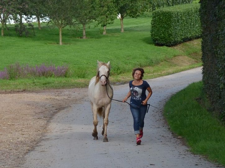 Divino est énergique au pas et au trot. Il est endurant et se montre très volontaire pour partir à l’extérieur. Il passe de partout et n’hésite pas à marcher sur tous types de sols (flaques d’eau, boue, rivière, sable, gravier, branches…)
